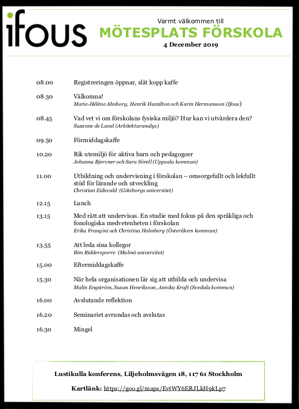 Pris för icke-Ifous-medlemmar: boka-tidigt-pris före 22 november 2490 kr, efter 22 november 2790 kr. Boka här.