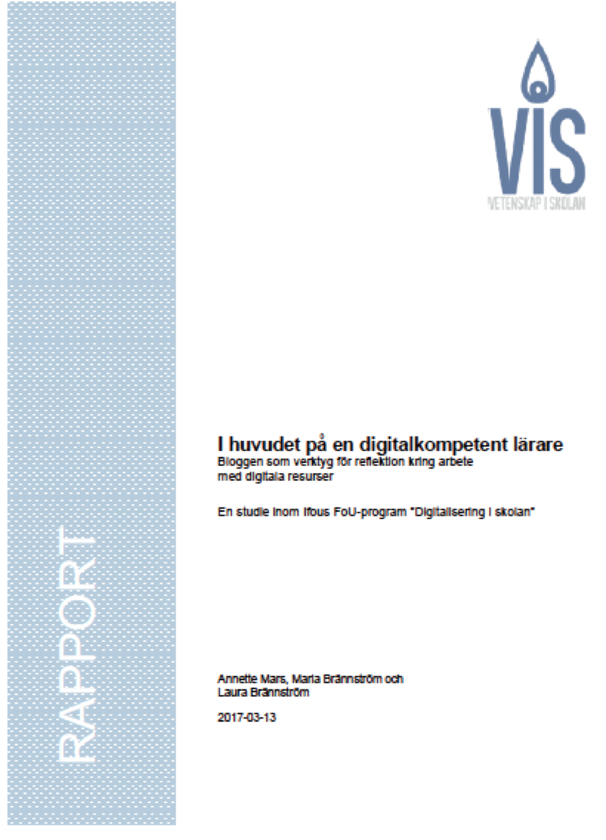 Bedömning av multimodala elevarbeten – lärares uppfattning om bedömning, Patrik Hernwall, Eva Insulander, Anna Åkerfeldt och Lisa Öhman, i Navigera i den digitala samtiden – en antologi om den nya lärarrollen, Karin Nygårds & Therese Raymond (red.), Lärarförlaget 2016. (kan beställas här)